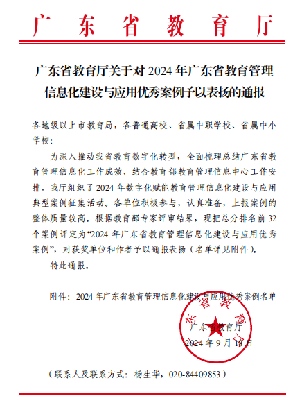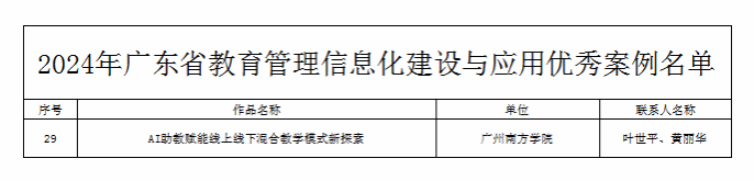 近日,广东省教育厅对2024年广东省教育管理信息化建设与应用优秀案例予以通报表扬,William威廉官网“AI助教赋能线上线下混合教学模式新探索”项目入选优秀案例。
