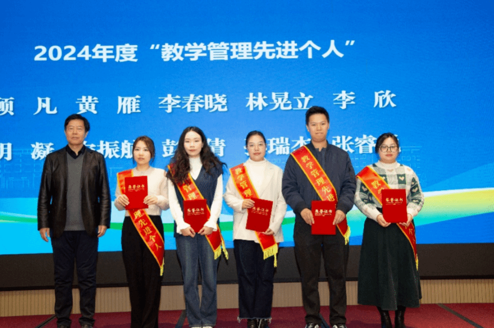 为激励全体教学管理人员持续提高服务意识与专业素养,此次工作会特设表彰环节,对2024年度表现突出的10名“教学管理先进个人”进行表彰。他们走在学校迎评促建工作一线,以实际行动践行了“管理就是服务”的理念,为提升学校的教学质量和管理水平做出了力所能及的贡献。希望所有受到表彰的“先进个人”珍惜荣誉,继续在各自的岗位上发光发热,以实际行动引领和带动周围同事,共同推动学校教学管理工作迈向新高度。