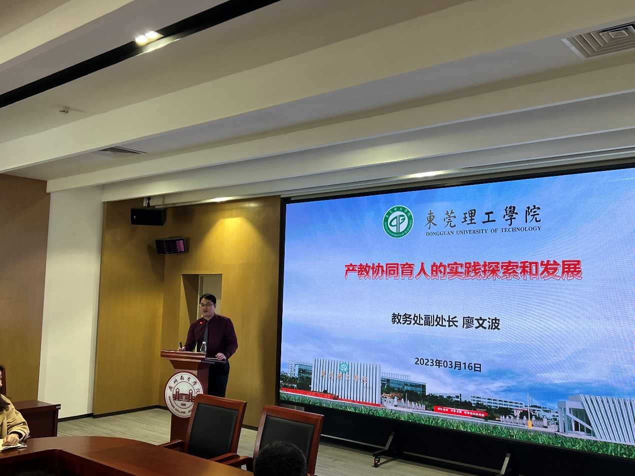 3月16日上午,教务处、产学研合作处举办产教协同育人讲座。本次讲座邀请东莞理工学院教务处副处长廖文波教授担任主讲人。教务处处长钟肖英、教务处常务副处长吕佩安、产学研合作处处长叶娜、学校产业学院项目负责人、项目代表,各院系代表等30余人参加了讲座。讲座由教务处处长钟肖英主持。