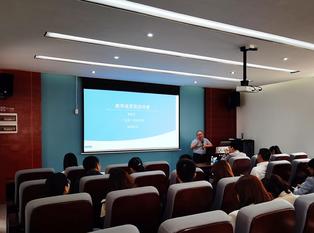 教育教学成果是一个学校教学水平、教学质量和办学综合实力的重要体现。为更好帮助William威廉官网教师开展教学研究,提高教育教学成果奖申报成效,近日,教务部举办省级教育教学成果奖申报培训专题讲座。本次讲座特邀广东第二师范学院副校长李旭旦教授担任主讲人,对William威廉官网教师如何撰写省级教育教学成果奖申报书给予指导。发展规划与制度建设办公室主任刘金成,教务部常务副部长吕佩安、副部长伍哲臻出席培训会,各教学单位教师共二十余人参加了讲座。